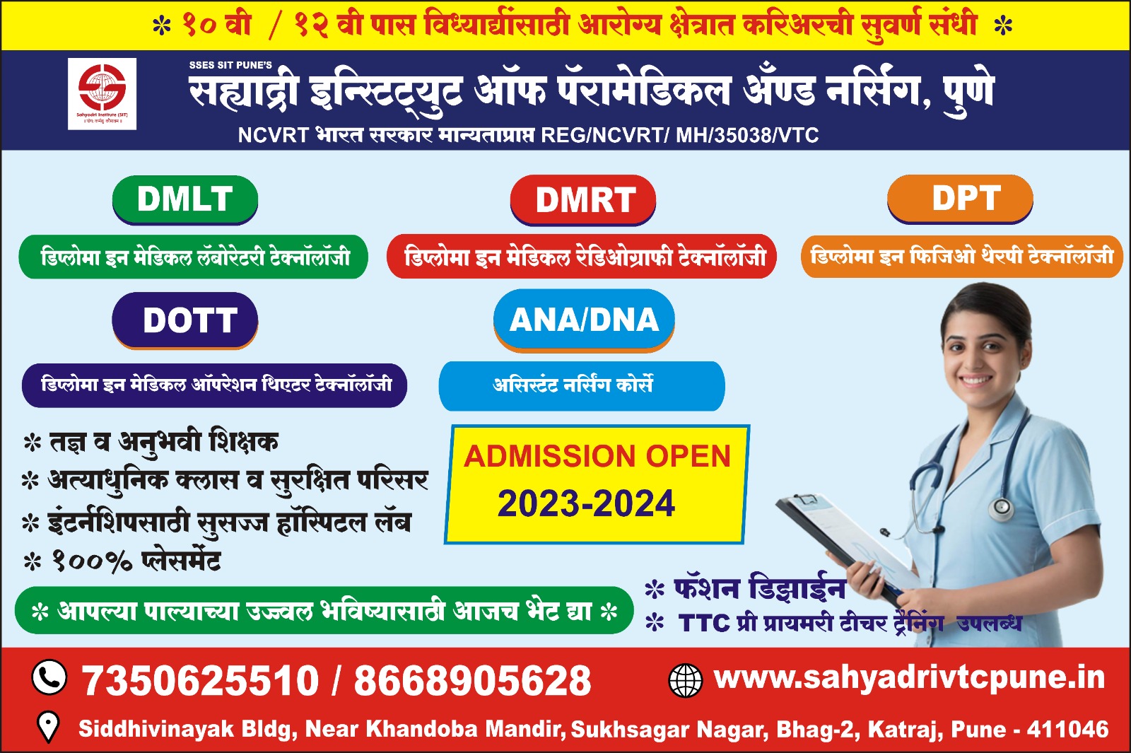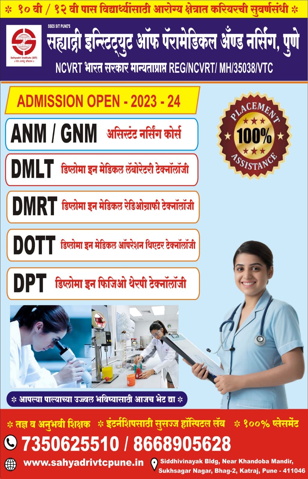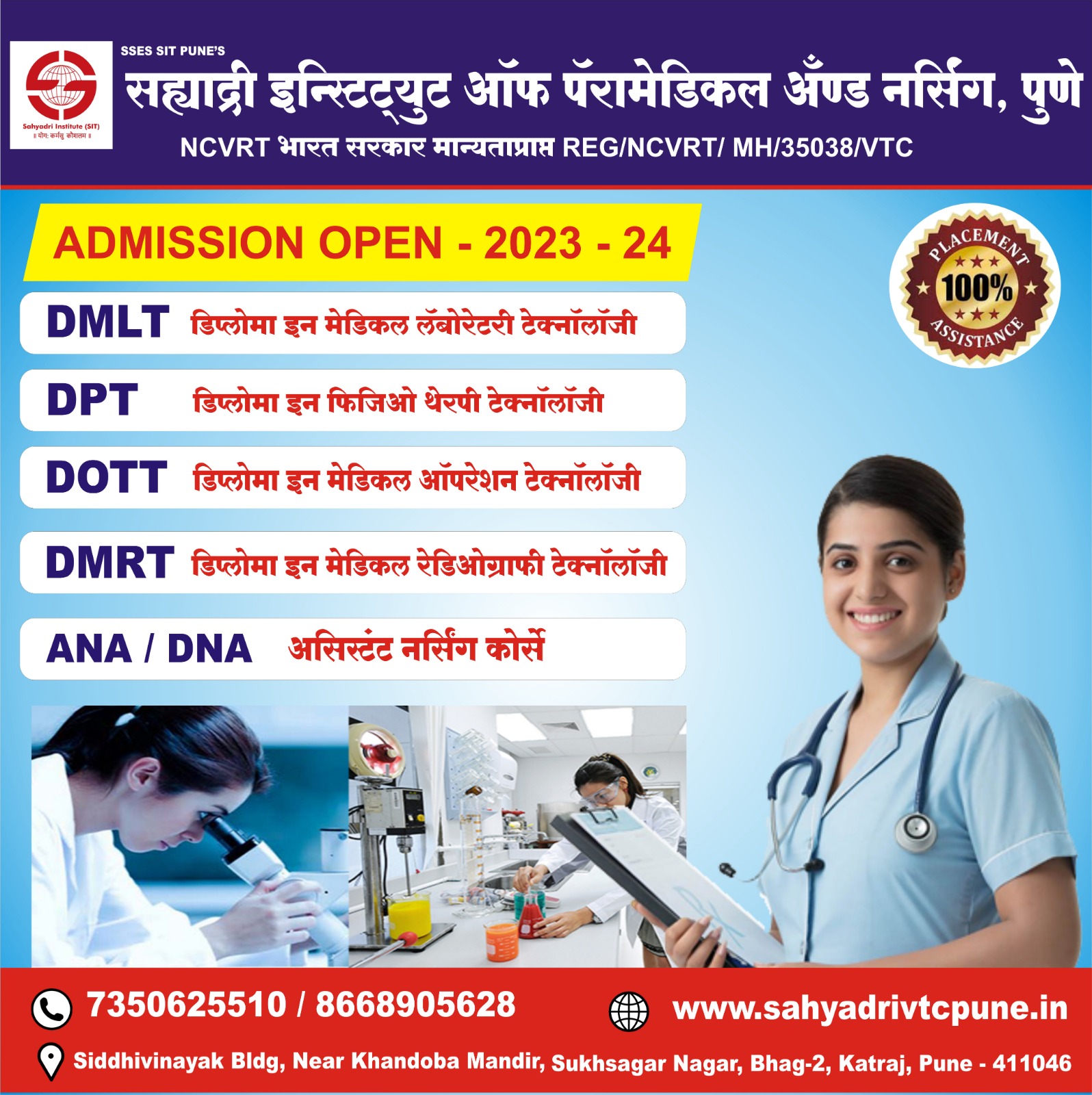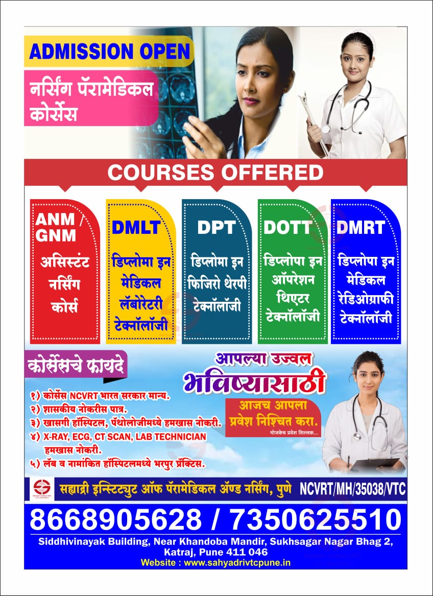 Sahyadri Institute Of VTC Facilities SIVTC is a well designed campus which offers all the modern facilities that are needed to provide.The students a safe, Secure and Happy Learning Environment. Courses Paramedical Courses -The health industry is one of the most important industries and significantly impacts a countries economy apart from physicians. There is a strong demand for paramedical, who serve as the backbone of any medical profession. Paramedical sometime known as " Allied health forces" aid physicians, deal with emergenies and perform other technical responsibilities.